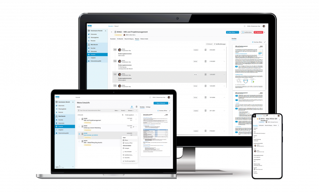 Gerade im Qualitätsmanagement sind revisionssichere Dokumente eine wesentliche Anforderung. WIVIO eignet sich daher als webbasierte QMS-Software bzw. Integriertes Managementsystem und erleichtert die Umsetzung der unterschiedlichen ISO-Zertifizierungen durch effizientes, strukturiertes und revisionssicheres Dokumentenmanagement, klare Verantwortlichkeiten und eine hohe Transparenz im gesamten Qualitätsmanagementprozess.